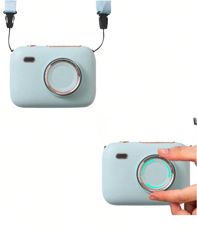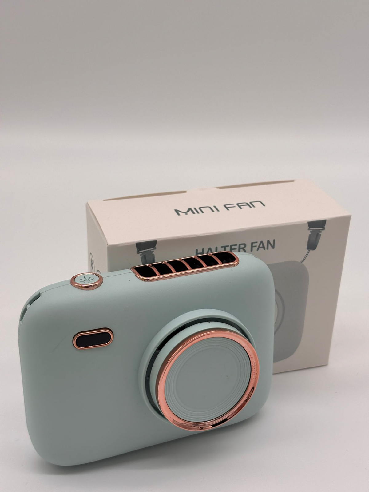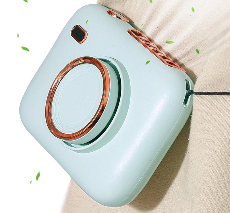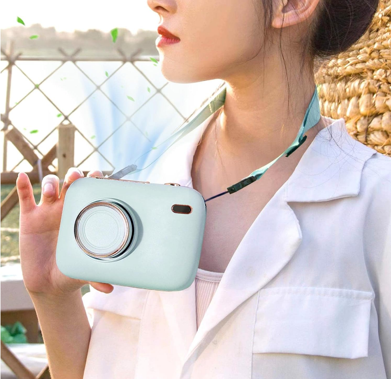 Ventilator Portabil Design Cameră Foto – 3 Trepte de Viteză, Cu Agățătoare de Gât & Cablu Încărcare Inclus