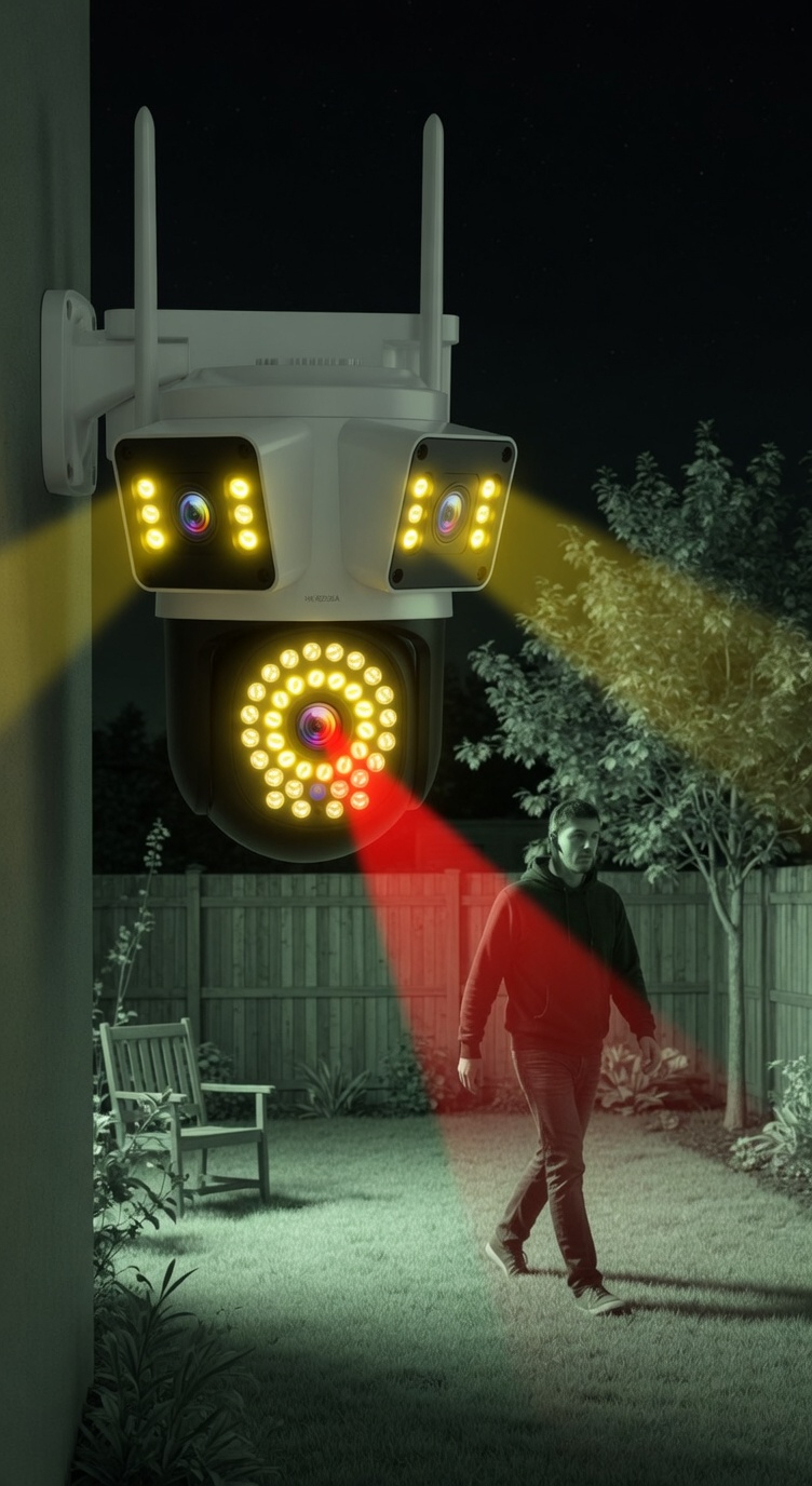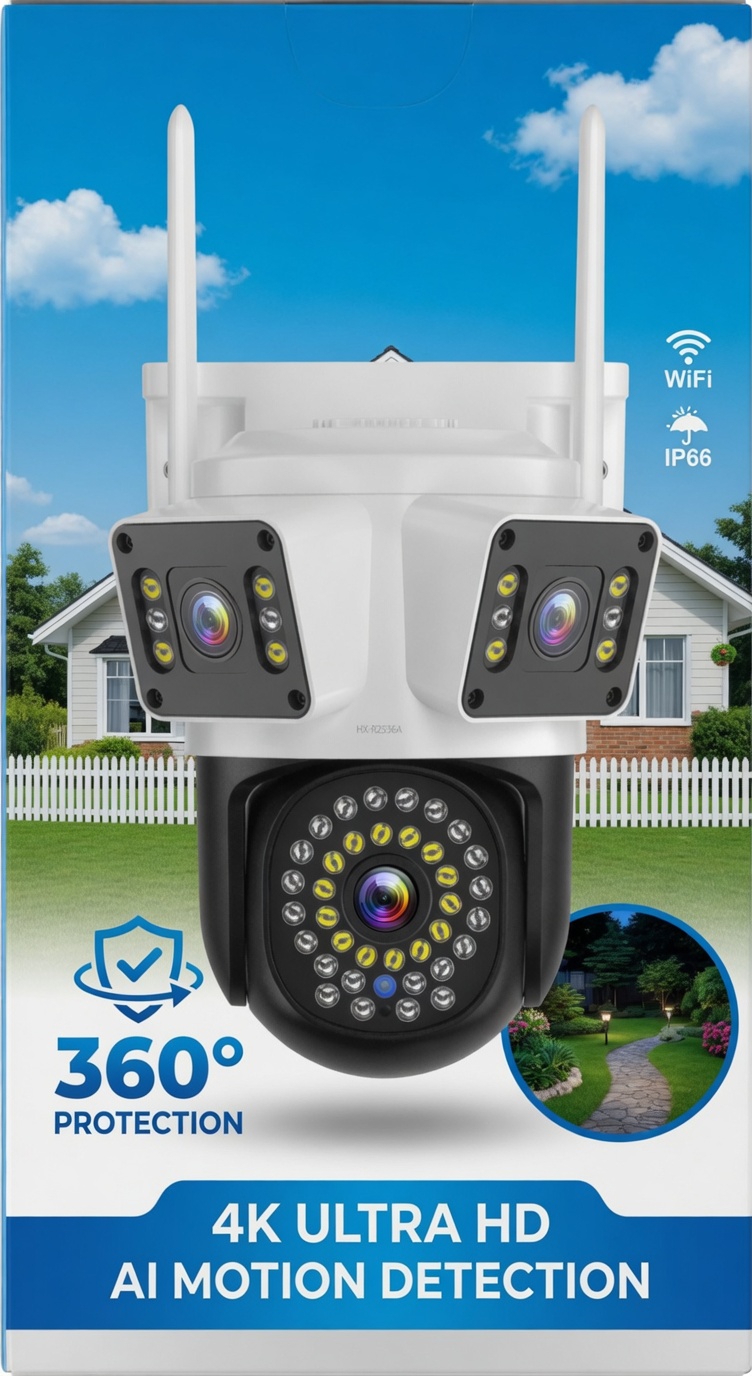 Asigura-ti locuinta cu aceasta camera de supraveghere WiFi cu 3 lentile, care ofera acoperire extinsa si functii inteligente pentru monitorizare completa. Ideala pentru exterior, camera combina imagine clara, detectie avansata si control direct din telefon.