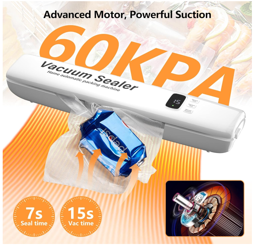 Pastreaza alimentele proaspete mai mult timp cu acest aparat de sigilat si vidat, ideal pentru uz casnic. Perfect pentru carne, legume, cereale sau fructe de mare, ajuta la prevenirea oxidarii si mentinerea prospetimii.