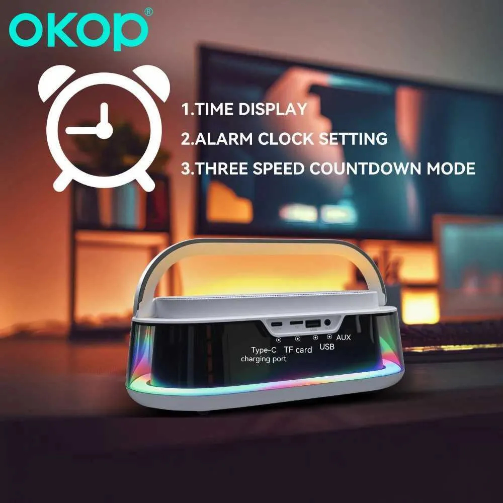✔️ 4 in 1: boxa + ceas + lumini + incarcator