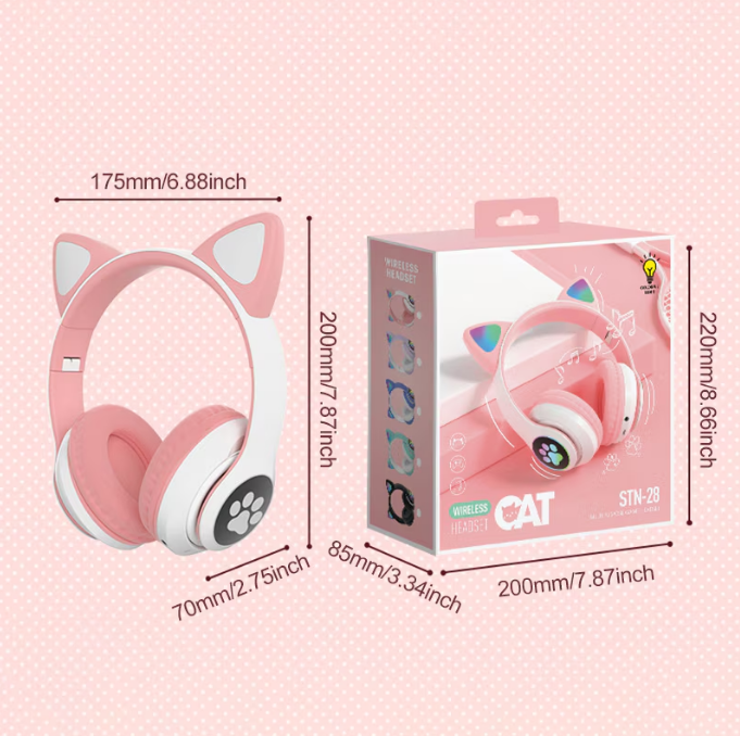 Căștile STN-28 în formă de urechi de pisică combină sunetul de înaltă calitate cu un design adorabil și modern! Cu lumini LED colorate, bass profund și conexiune stabilă Bluetooth 5.0, sunt perfecte pentru muzică, apeluri sau gaming.