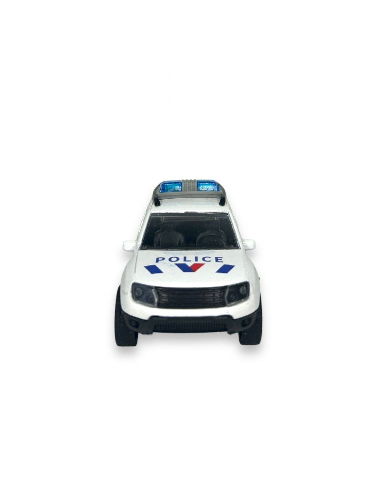 - Culori: Design clasic de mașină de poliție, predominant alb-negru