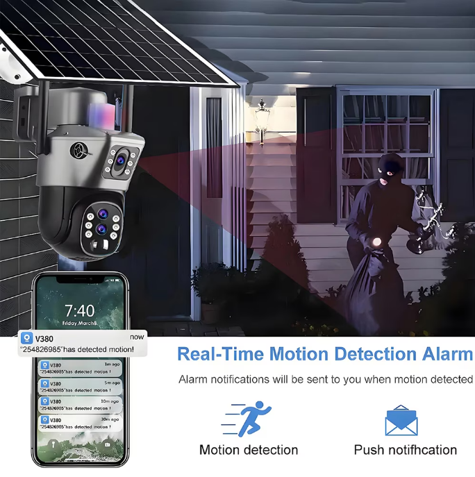 Descoperă soluția inteligentă de monitorizare cu camera V380 Pro – o cameră de supraveghere modernă, compatibilă atât cu rețele Wi-Fi cât și 4G, ideală pentru locații fără acces la rețea fixă. Alimentată prin energie solară și dotată cu baterie internă, camera oferă supraveghere continuă fără cabluri, în condiții diverse.