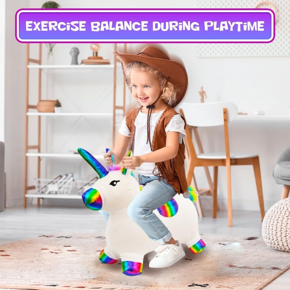 Unicornul Gonflabil din Cauciuc si Material Textil este jucaria ideala pentru copiii care iubesc sa exploreze si sa se distreze. Cu o constructie robusta din cauciuc de calitate si un strat textil moale si placut la atingere, acest unicorn ofera o experienta de joaca confortabila si sigura. Efectele de lumini si muzica adauga un element de magie si incantare, facandu-l partenerul perfect pentru joaca.